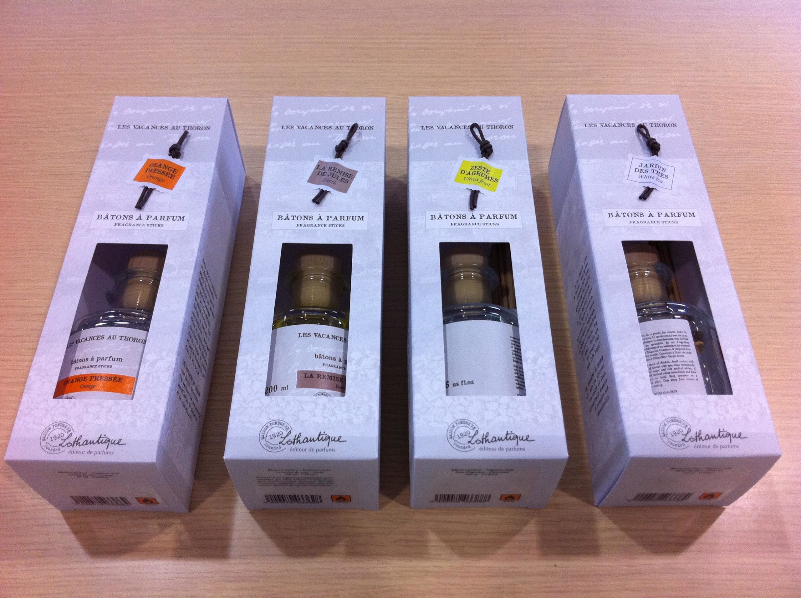 左からオレンジ、アース、シトラスフルーツ、ホワイトティー。