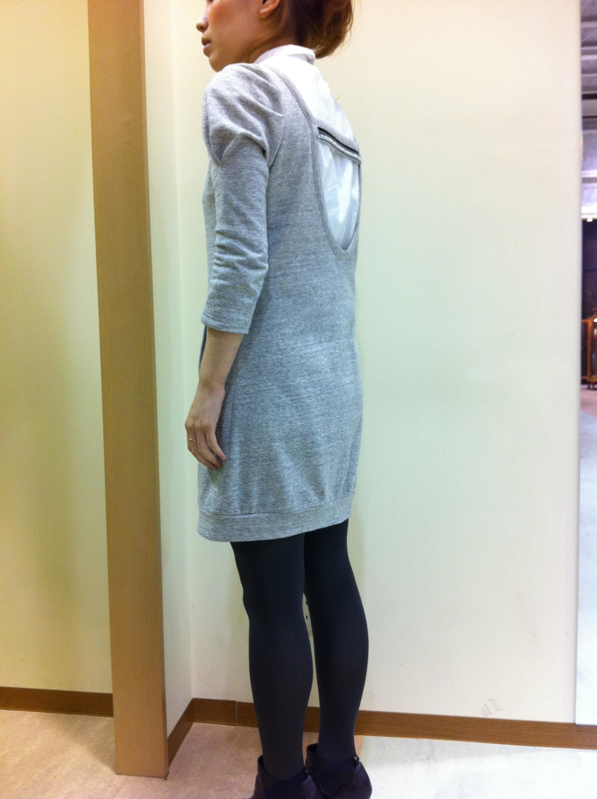 背中がぱっくりわれたワンピですが、それをいかしてインナーを見せて・・・