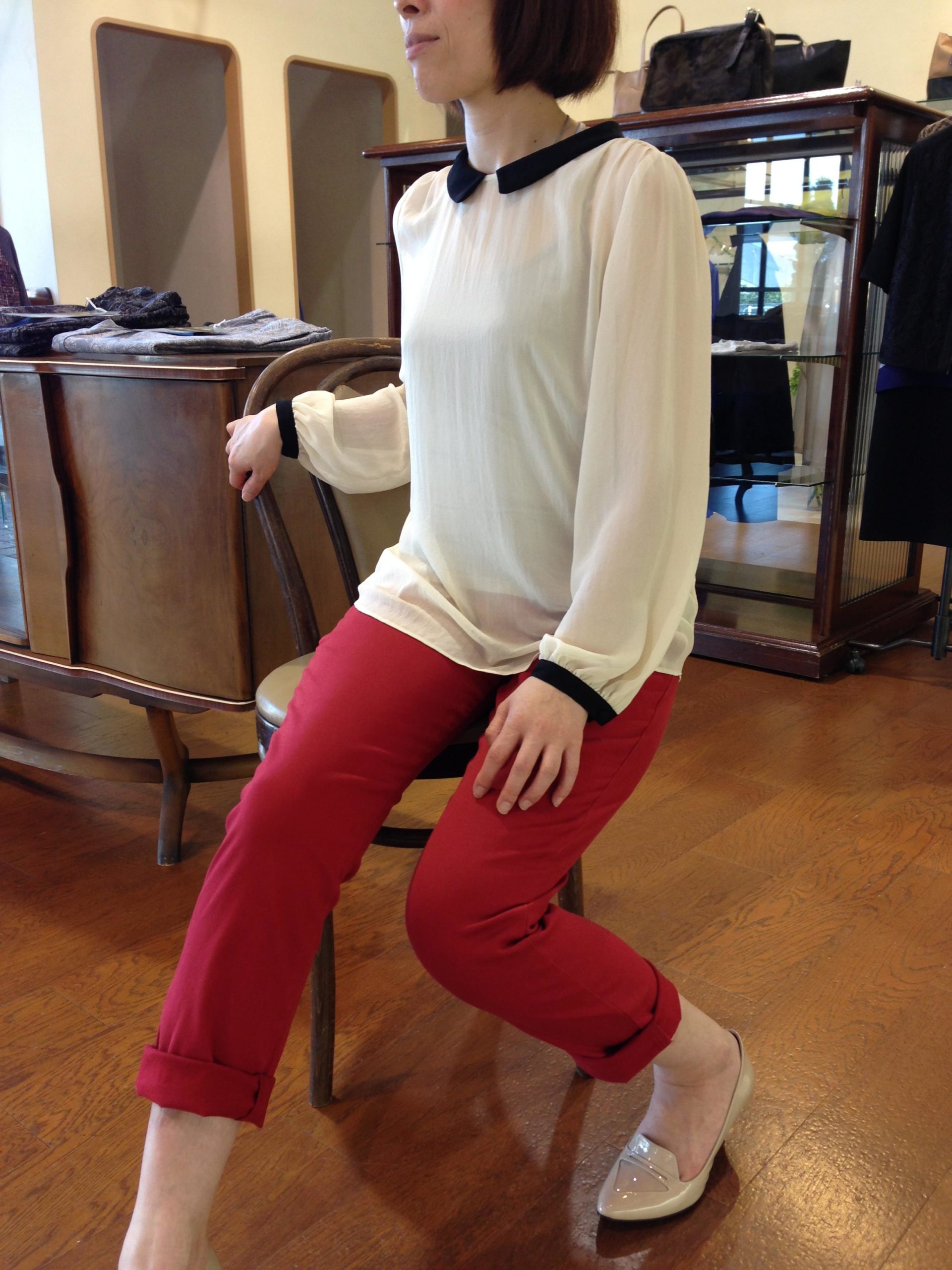洋服はついつい無地になってしまいがち、柄を小物でプラスすることでコーディネートの中にアクセントがつきますね