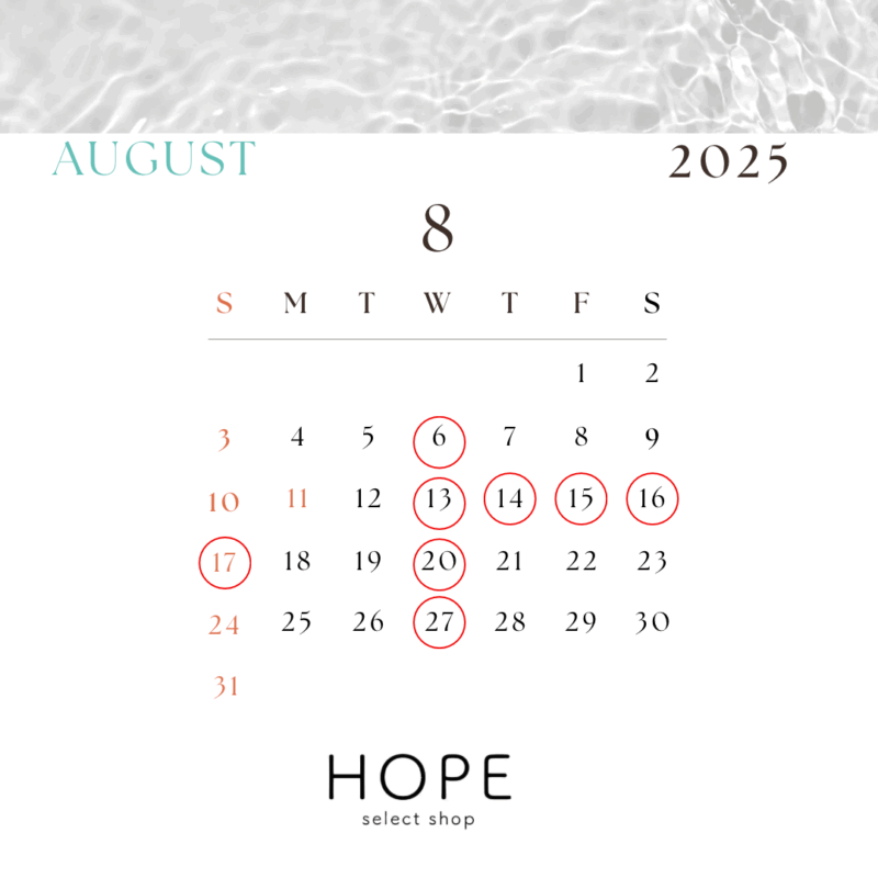 ◉8月の店休日◉